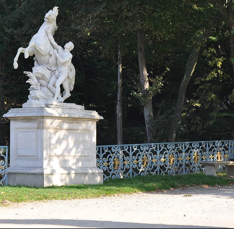 The original Chevaux de Marly are now in the Louvre and there are replicas on the Champs de Elysee, and also still in Marly. They were erected in the royal park when the Chateau de Marly was built by Louis XV. The chateau unfortunately no longer exists.